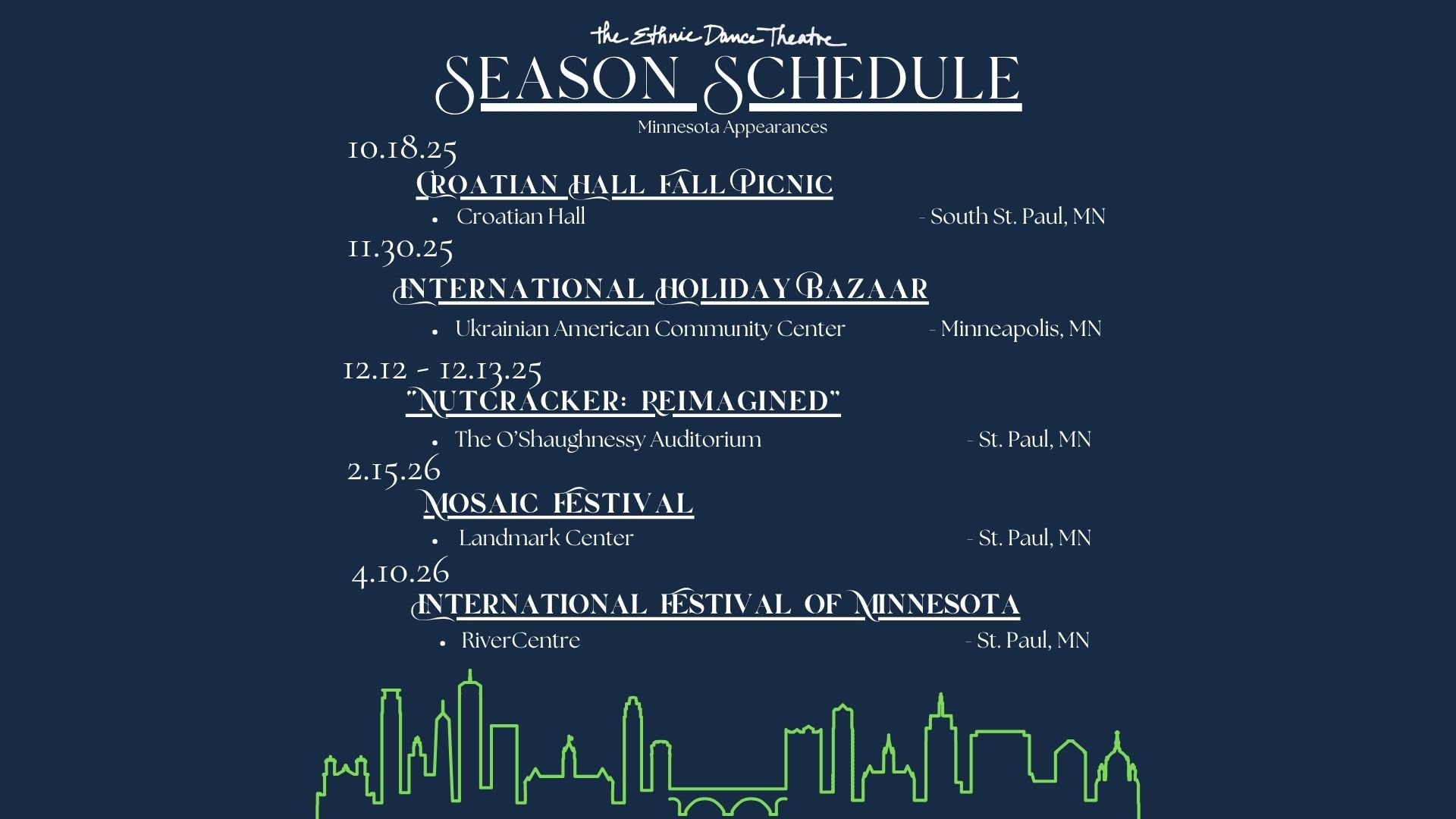Ethnic Dance Theatre is an award-winning company dedicated to the artistic performance and preservation of world music, song and dance.