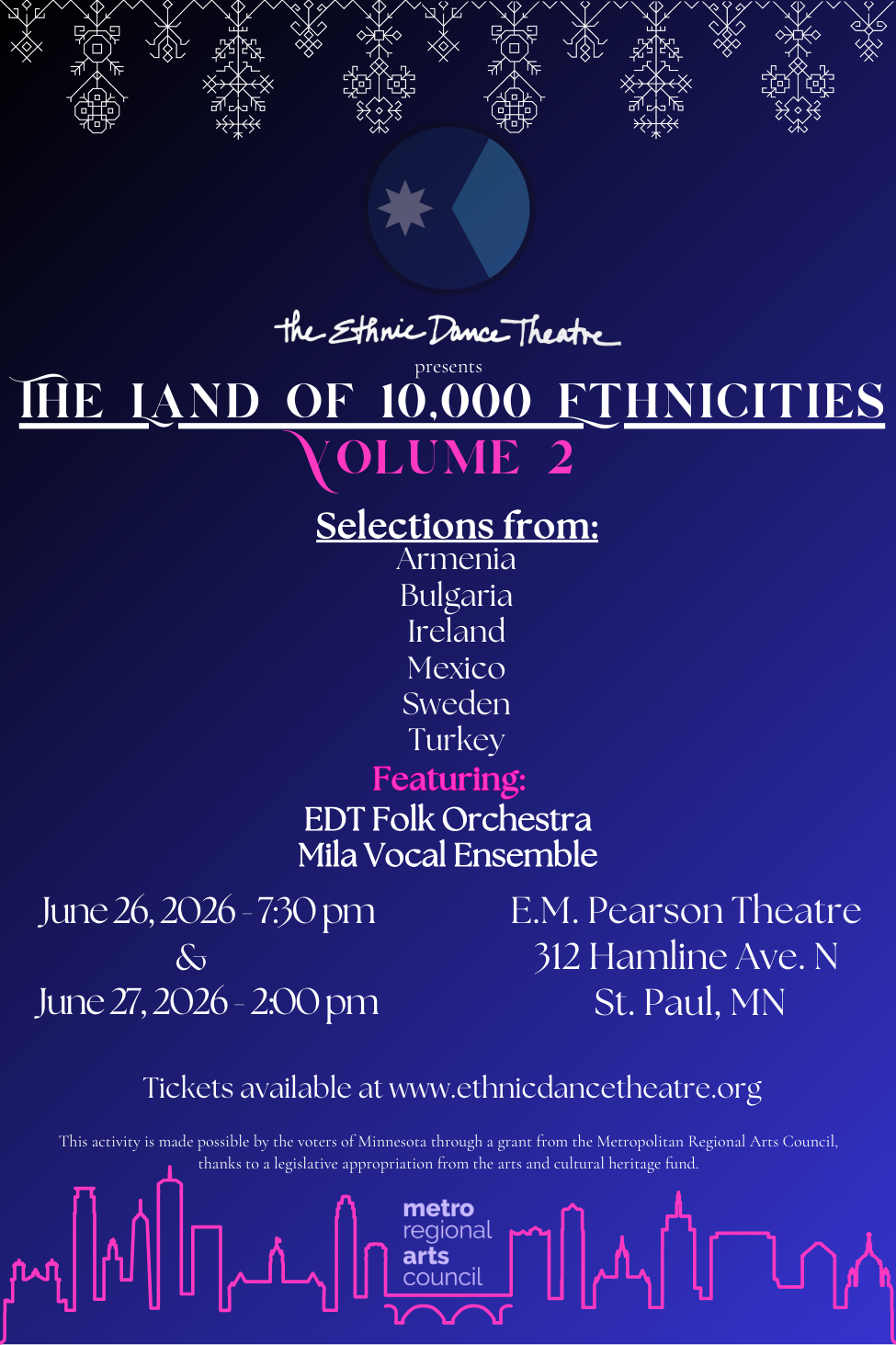 The award-winning Ethnic Dance Theatre is one of only few dance companies in the USA dedicated to the preservation and artistic performance of world music, song and dance.